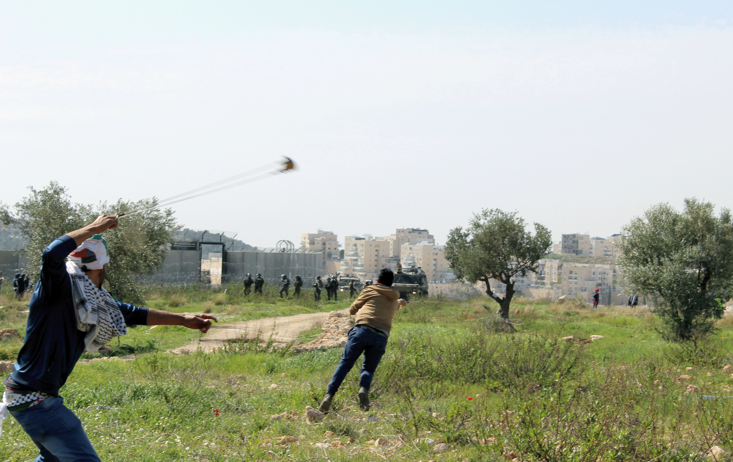 These images were taken in the Palestinian village of Bil'in on the tenth anniversary of the protests against the Israeli separation wall. Through a documentary lens, the series captures the dynamics of the weekly protests, examining the interaction between Palestinian residents, Israeli military forces, and settlers across the wall. And also, their reaction and performance for the camera.